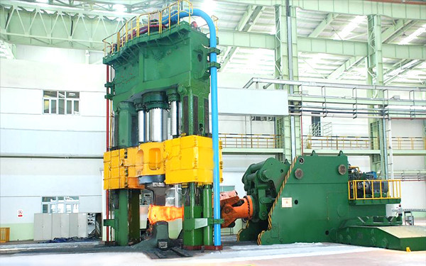 生產(chǎn)能力 / Production Capacity 5000t油壓機(jī) 主要生產(chǎn)設(shè)備 The main production equipment 該設(shè)備主要運(yùn)用于金屬材料自由鍛、模鍛的各種工藝,如:鐓粗、沖孔、馬杠擴(kuò)孔、錯(cuò)移、粗轉(zhuǎn)、切割、彎曲、拔長等。 最大鍛造100t鋼鍛件。 并有一支從